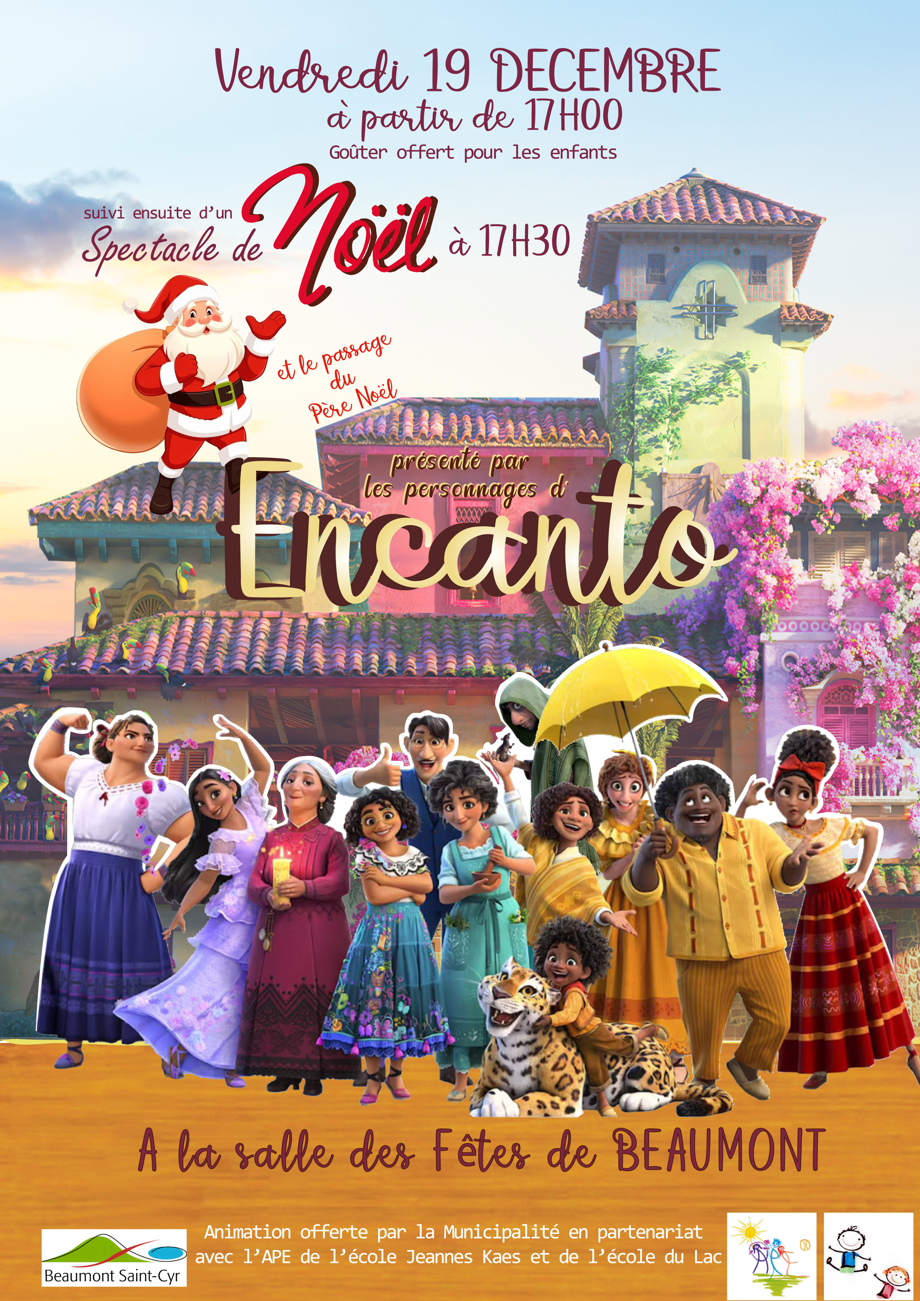 La Municipalité, en partenariat avec l’APE de l’école Jeanne Kaës et l’APE de l’école du Lac, vous invite à une soirée féerique le vendredi 19 décembre, à la salle des fêtes de Beaumont.