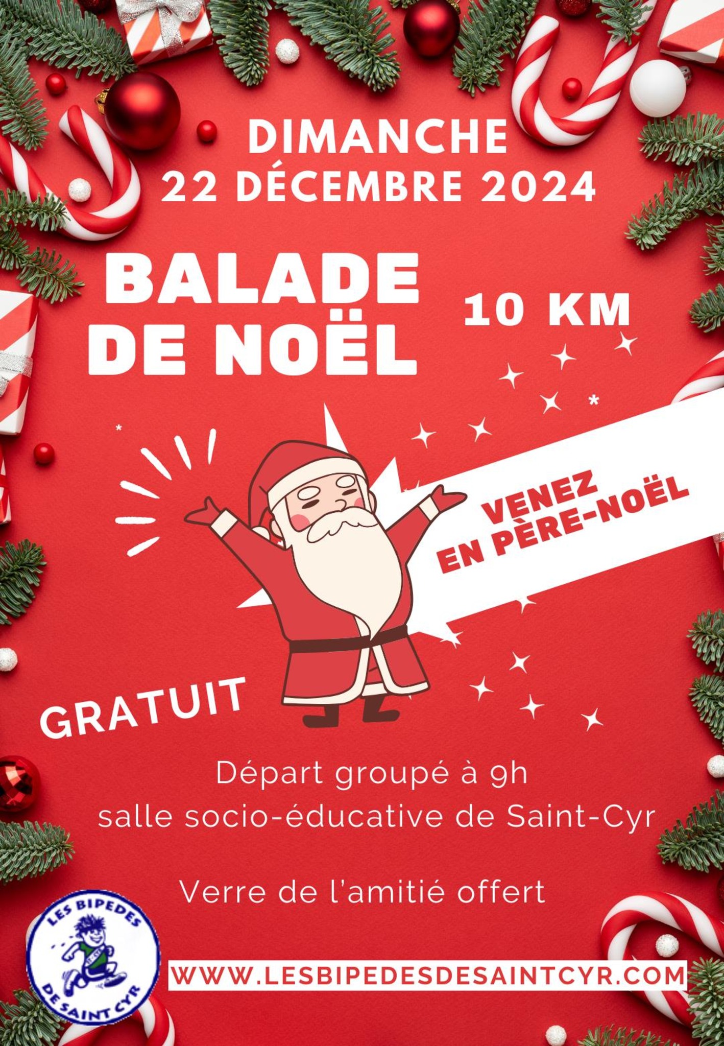 Nous relayons avec plaisir, l’invitation des Bipèdes de Saint-Cyr, qui donnent rendez-vous à l’ensemble des associations et des habitants pour leur traditionnelle Balade de Noël.